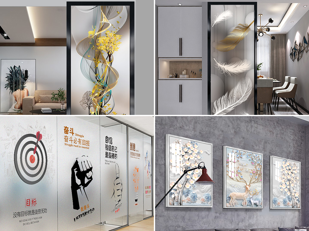 2. Цифровые принтеры для стекла: специализированные принтеры для печати на стекле могут использоваться для создания декоративных узоров, изображений или текста на стеклянных поверхностях, таких как оконные стекла, зеркала, стеклянные столешницы и двери.